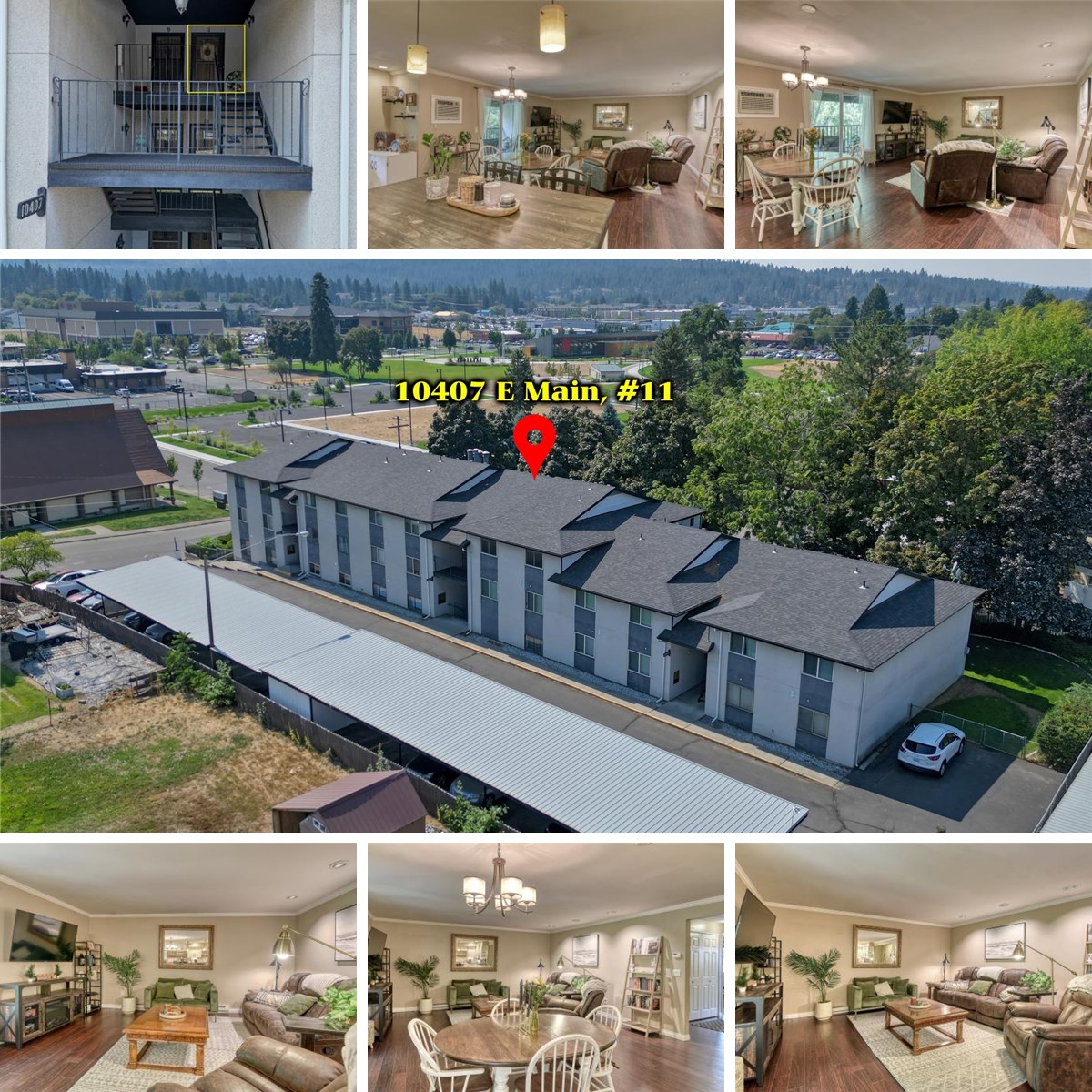 UPDATED CONDO WITH OPEN CONCEPT FLOOR PLAN! This 1150sf 2 bed, 2 bath condo will not disappoint. The spacious kitchen features stainless steel appliances, full tile backsplash, kitchen island, eating bar plus informal dining area. All appliances stay! Large family room right off kitchen with slider out to private tiled deck. Primary bedroom features generous closet space, vanity and walk in shower. Deck has a storage area plus additional storage in the basement common area. Covered carport parking with additional parking available for visitors. Great location! Next to Balfour Park and the brand new Spokane Valley Library. New roof in 2022. HOA fees are $160/month which include garbage, snow plowing & grounds maintenance.