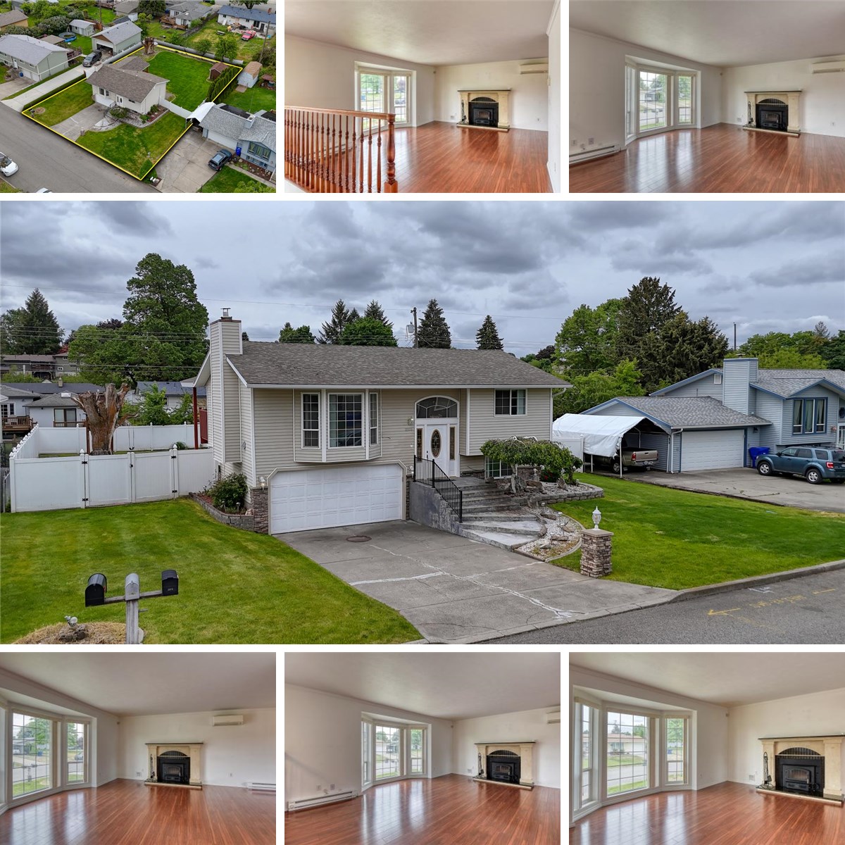 Beautifully Remodeled Spokane Valley Contemporary! 1/4 acre lot with RV parking and room for a shop! Extra wide front steps lead you into this home which features luxury vinyl plank flooring throughout the main floor living areas, and large living room with granite/tile surround fireplace. Gorgeous kitchen with custom cabinets, granite countertops, full stainless steel appliance package, and travertine tile floor. 2 main floor bedrooms and remodeled bathroom with newer vanity, tile shower and travertine tile floor. Downstairs features family room, 3rd bedroom and bathroom with shower, newer vanity and tile floor. Mini split heating and cooling system, energy efficient vinyl windows, low maintenance vinyl siding, and architectural roof. Sprawling covered and lighted back deck overlooks huge, private back yard with vinyl fencing, treehouse, concrete curbing, and full sprinkler system. Close to Mirabeau Park, Plante's Ferry Park, Centennial Trail and elementary school.