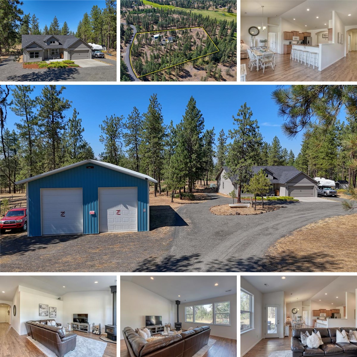 This single level, 2017 built 4 bed/2 bath home on nearly 7 acres sits in a quiet, private setting surrounded by trees. Inside, you’ll find an open floor plan w/cathedral ceilings, large kitchen w/eat-at bar & pantry, fresh paint & new flooring, & wood stove to keep you warm year-round. Oversized primary features a 5-piece ensuite w/walk-in closet & soaking tub. Heat pump, central AC, energy-efficient hot water tank, & additional insulation provide comfort & efficiency. Beautiful views, sunsets, & wildlife await. Huge, insulated 48x30 shop has power, storage mezzanine, 2 hobby/storage rooms, updated lighting, & two 10x12 roll up doors. 13K gas/propane generator keeps the home running during outages. Seasonal creek adds to the peaceful setting. Outdoor features include a 20x20 concrete patio, covered back patio, garden shed w/firewood storage, firepit, vegetable garden w/drip system, circular drive, pumphouse w/extra storage, & ample RV parking. 15 min to Cheney, 20 to Spokane.