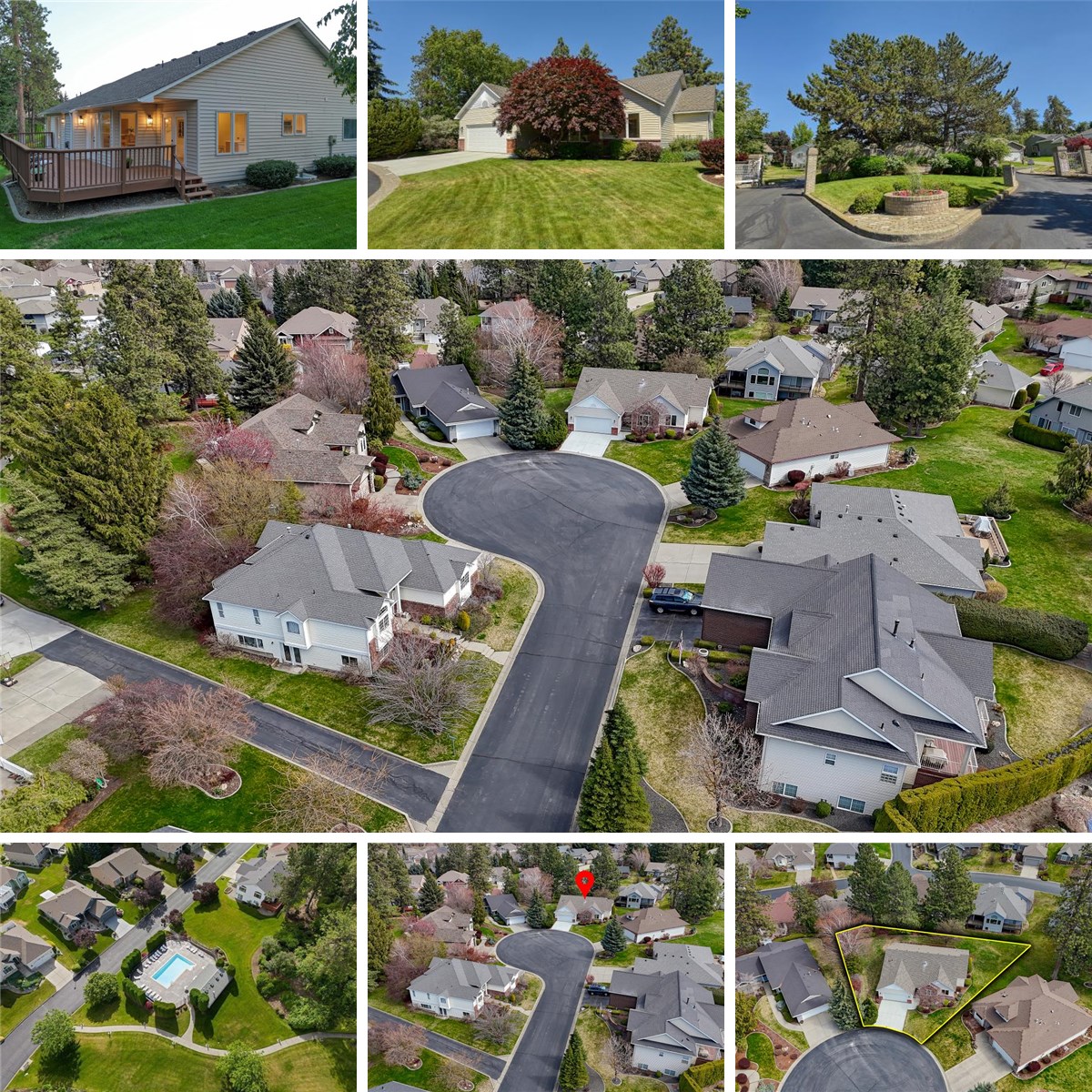 Located in one of Spokane's most sought-after South Hill communities, this beautifully remodeled home offers the ideal blend of privacy, amenities and sophisticated living. Residents enjoy community trails, pool, gated entry, snow removal and full yard care including mowing providing truly low maintenance living with the freedom to lock and leave. Situated on a quiet cul-de-sac, this nearly 3700 sq. ft home has been thoughtfully updated with new luxury flooring, a gorgeous kitchen remodel and updated bathrooms throughout. The main floor features a dedicated office just off the entry offering spectacular sunset views, vaulted ceilings that enhance the home's natural light, and a warm, inviting living room centering around the gas fireplace. Main floor utilities add everyday convenience. Designed for entertaining, four sets of french doors open from the kitchen, living room and primary suite onto an expansive deck that spans the length of the home creating seamless indoor-outdoor living and an entertainer's dream setting. The finished walk-out basement provides exceptional additional living space, perfect for guests, recreation, or multigenerational living. With 4 bedrooms, 3 full baths and generous gathering spaces throughout, this home offers room for everyone - and room to host.
